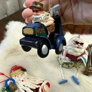 - Golfing Santa ornament in a golf cart, measuring 3.25 inches