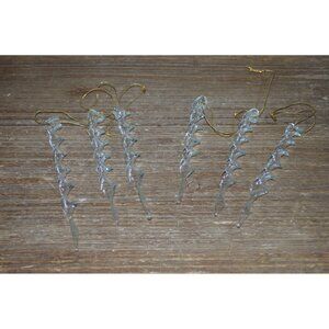 Christmas Ornaments Clear Glass Icicles Twisted Spiral Set of 6 Hanging
