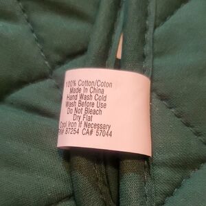 Festive oven mitt and pot holder set with a red truck and barn design. Perfect for holiday cooking.