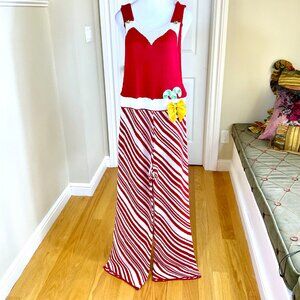 Christmas Overalls Knit Red White Stripe Wide Leg (S) NWT