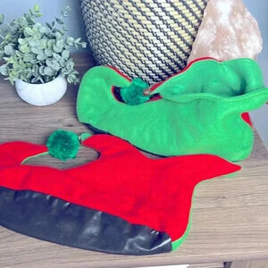 Comes with elf long sleeve shirt and matching pants as well as one size fits all elf booties