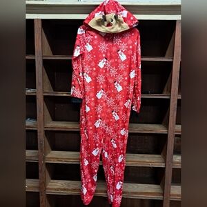 Christmas Pajamas Snowman Printed Hooded Romper PJ's Zipper Jumpsuit