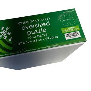 The assembled puzzle measures approximately 27 x 39 inches (68.58 x 99.06 cm), offering a large format for an engaging and satisfying puzzle experience. It is made from standard puzzle cardboard material and is packaged in a rectangular box with a green border and holiday-themed graphics. The box also includes an image of a puzzle piece indicating the actual size. This puzzle is made in China and bears the model number HL9175903. The printed copyright year is 2021. A warning states it is not suitable for children under 3 years due to small parts.