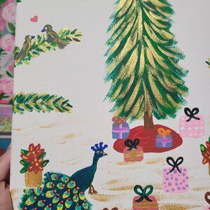 Little peacock woke before the rest of the family and has seen the first magical moments of Christmas morning! A Christmas tree adorned with gold, mistletoe hanging from the ceiling, and a pile of gorgeous gifts! Two of the turtledoves look down from the eves - can you hear the glittering sounds of the bells? Bring this holiday magic into your home for years to come!