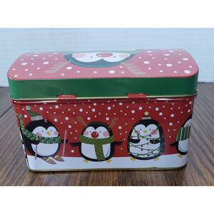Christmas Penguin In Green Scarf Winter Holiday Small Tin Container