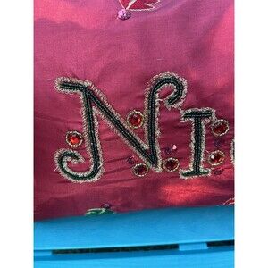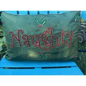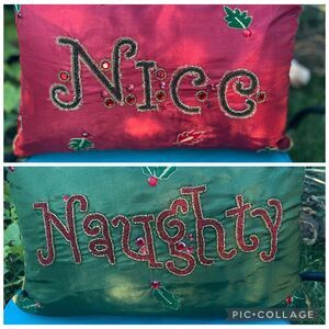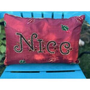 Christmas Pier 1 Double Sided Pillow Naughty/Nice Beaded Embroidered Gold Trim