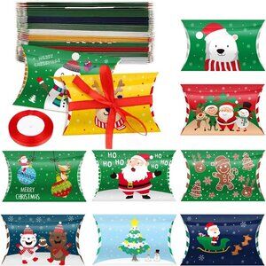 Christmas Pillow Boxes, Xmas Candy Boxes with Red Ribbons Ties Santa Elk Gift Card Holder for Party Supplies