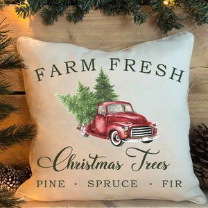 Christmas Pillow Cover, Christmas Truck, Indoor/Outdoor, Holiday Decor