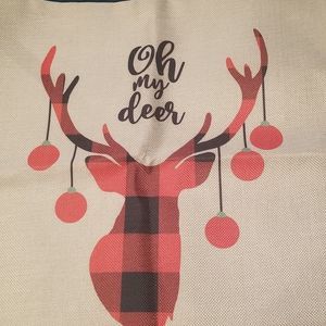 Buffalo Plaid Merry Christmas, Farm Fresh Christmas trees, oh my Deer, & baby it's cold outside. Has a linen burlap feel or texture. 1st. photo stock photo. New without tags.
