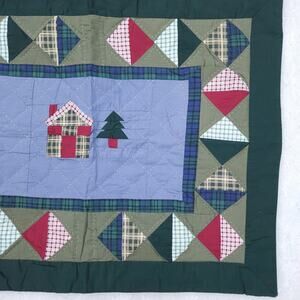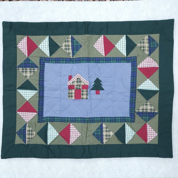 Christmas Pillow Sham Cover Quilted Patchwork Standard Green Rustic Cabin 2pcs