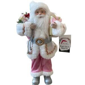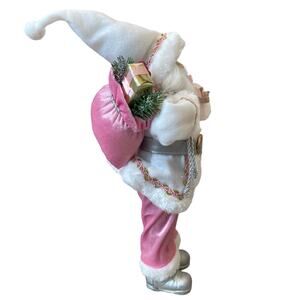 Christmas PINK WHITE Sincerely Santa Claus Doll Figurine Tabletop Decor 13"