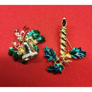Christmas Pins/ Brooch Set of 2 Christmas Holly Berry marked "AK" & Holly Leaf Bell Pins in great condition as shown in pictures.