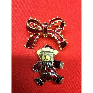Christmas Pins/ Brooches Set of 2 Christmas Teddy Bear & Red Bow Pins in great condition as shown in pictures.