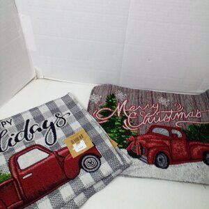 Christmas Placemat Lot of 4 Red Truck Tree Fabric 18" x 12.5" 2 Patterns