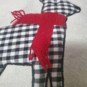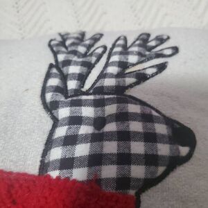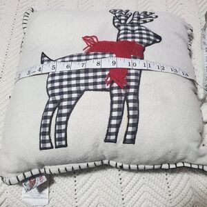 Christmas Black & White Plaid Reindeer Wool Blend Throwpillow. *Some light peeling as pictured, but overall good condition. Pre-owned. Please refer to pictures for best description and condition verification.