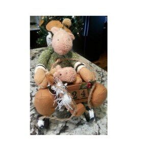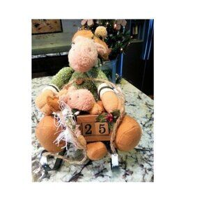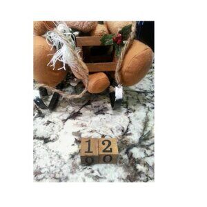 Christmas Plush Moose Pair Wood Sled w/ Day Date Blocks Calendar Holiday Winter