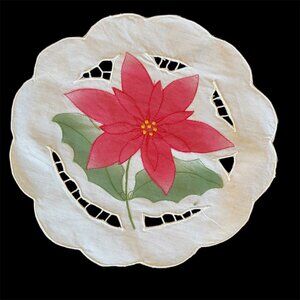 Christmas Poinsettia Cotton Cut Out Doilies Set Of Four Cottage Core