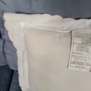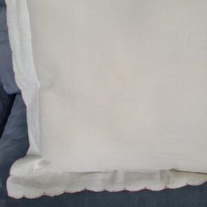 Great condition consistent with vintage age; light wear from gentle display and extended storage; minor slubs/snags on muslin, part of material; small discoloration spot on back of pillow