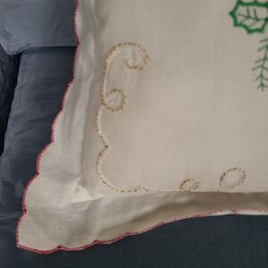 Christmas Poinsettia Embroidered Throw Pillow Gold Cord Scalloped Ruffle Vintage