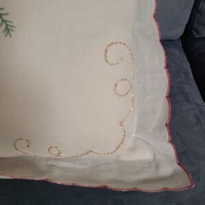 Creamy white muslin fabric with (machine?) embroidered poinsettia design
