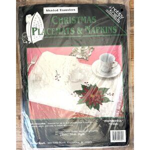 Christmas Poinsettia Placemat & Napkin Set With Decorative Shaded Transfer kit