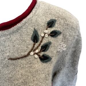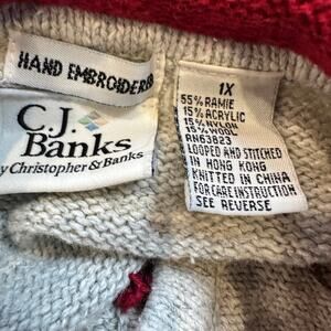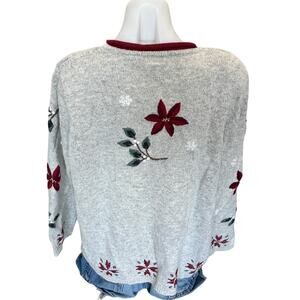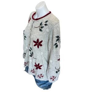Christmas Poinsettia Sweater SIZE 1X Embroidered Oversized Cardigan Vintage 80s