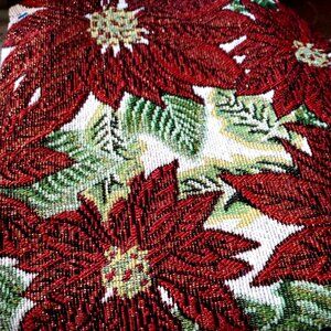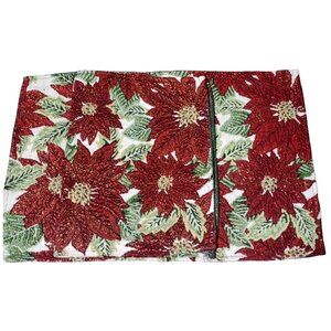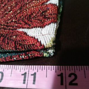 Christmas Poinsettia Table Place Mats Tapestry Jacquard Gold Woven Set of 2