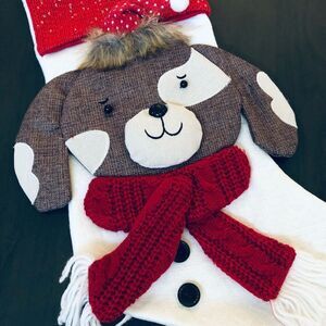 NWT adorable fabric 3-D spotted dog Christmas pet holiday stocking. Standard size.
