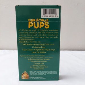Christmas Pups VHS. Includes 4 Christmas themed cartoons; "The Shanty Where Santa Claus Lives", "Christmas Pups", "Snow Foolin' (Jingle Bells sing-a-long)", and "Little Tin Solider". Box is in very good condition. Tape is tested & working.