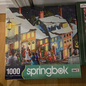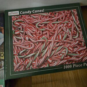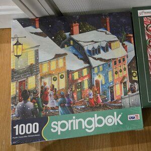 1000 pieces each. Never opened. Non smoking home. Candy Canes by Vermont Puzzle Co. And Christmas Carolers by Springbok.