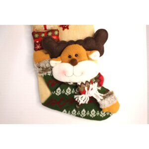 Christmas Queen Reindeer 3D Stocking 18 inches Red Beige Holiday Decor NWT