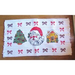 Christmas Rag Rug Screen Printed Santa Tree Cottage 24 x 45 USA New with Tag