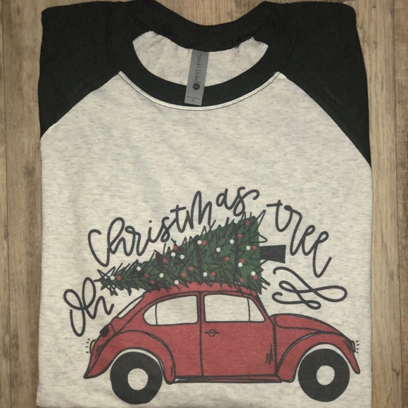 Christmas is already on my mind! This cute design comes on a black sleeve raglan. Sizes XS-3XL available.