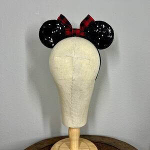 Christmas Red & Black Buffalo Plaid Minnie Ears | Disney-Inspired Holiday Ears