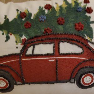 Christmas Red Car Imbelished Tree Pillow 20 X 14"