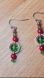Christmas Red & Green Dangle Pearls, Glass Beads, & Crystals Earrings Handmade
