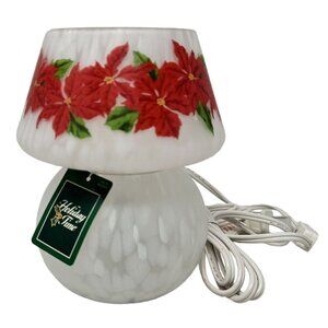 Christmas Red Poinsettia White Speckled Art Glass Mushroom Table Lamp 7 Inch