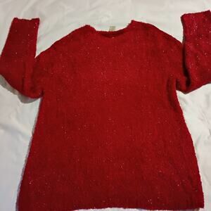 Christmas Red Sparkle Large Sweater Easy Care Tunic Style SOFT Simple Elegance