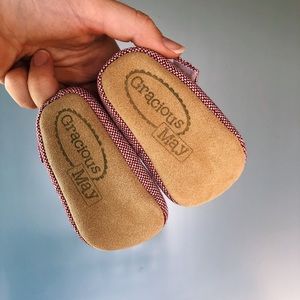 Silk Shoes by Gracious May!! These baby shoes feature a suede sole and red sparkle exterior. These shoes feature a Velcro ankle strap. These shoes are NEW and ship straight from the Gracious May Studio in the Dallas, TX area. These infant shoes are and excellent compliment to Christmas and holiday outfits! MORE COLORS AVAILABLE, check out our other listings!