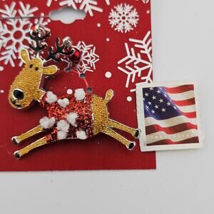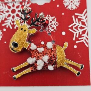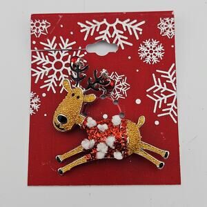Christmas Reindeer Brooch Pin Ugly Sweater Holiday Party Whimsical Cutesy NWT