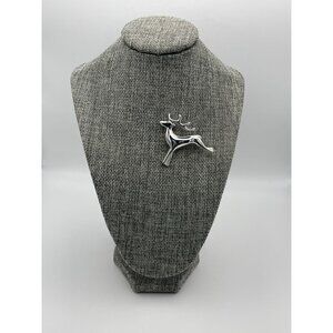 Christmas Reindeer Buck Shiny Silver Tone Brooch 2" Holiday