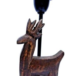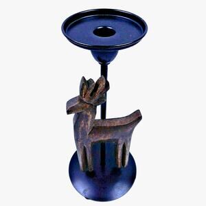 Christmas Reindeer Candle Holder Metal & Wood Rustic Mission 11" for Pillar