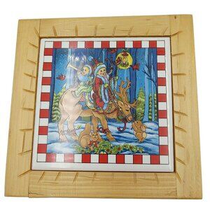 Christmas Reindeer Hot Plate Tile Surrounded With Wood 2000