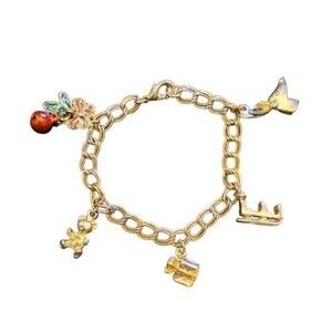 Christmas Reindeer Sleigh Present Teddy Bear Holly Bell Charm Bracelet 6.5 in