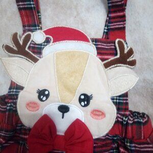 Christmas, Reindeer Toddler Dress. Size: 9-12 months. Color: red/multi-colored. Material: Upper 95% Cotton, 5% Elastane. Lower: 100% Polyester. Condition: Preowned, has no stains, no tears, no rips, no damage. Comes from a smoke free home. Thanks for watching!