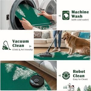 jinchan Christmas Round Rug 5ft Area Rug Green Xmas Tree Rug Washable Rug Circle Rug Round Non Slip Soft Rug Holiday Decor for Kitchen Bedroom Foyer Nursery Living Room Entryway(Green,5ft Round)