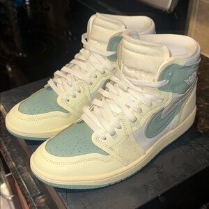 🎄 Christmas Sale 🎄 Size 10 Nike Air Jordan 1 Green Beige & White - Worn Once