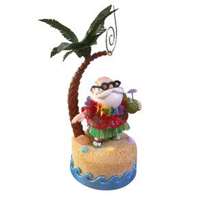 Santa traded his sleigh for a tropical escape. Dressed in a hula skirt with a drink in hand, this ornament captures his laid-back beach vibes.
