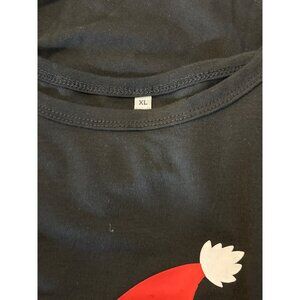 Christmas Santa Hat HO HO HO Black Red Tee Long Sleeve Size XL