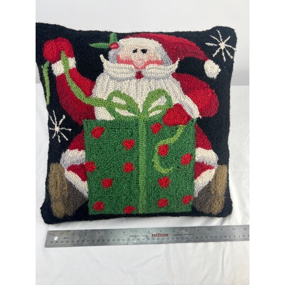 Christmas Santa Hooked Pillow New Zealand wool yarn Velvet Back